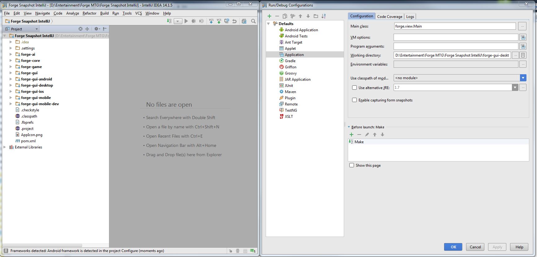 Use classpath of module also needs to be forge-gui-desktop in the configuration