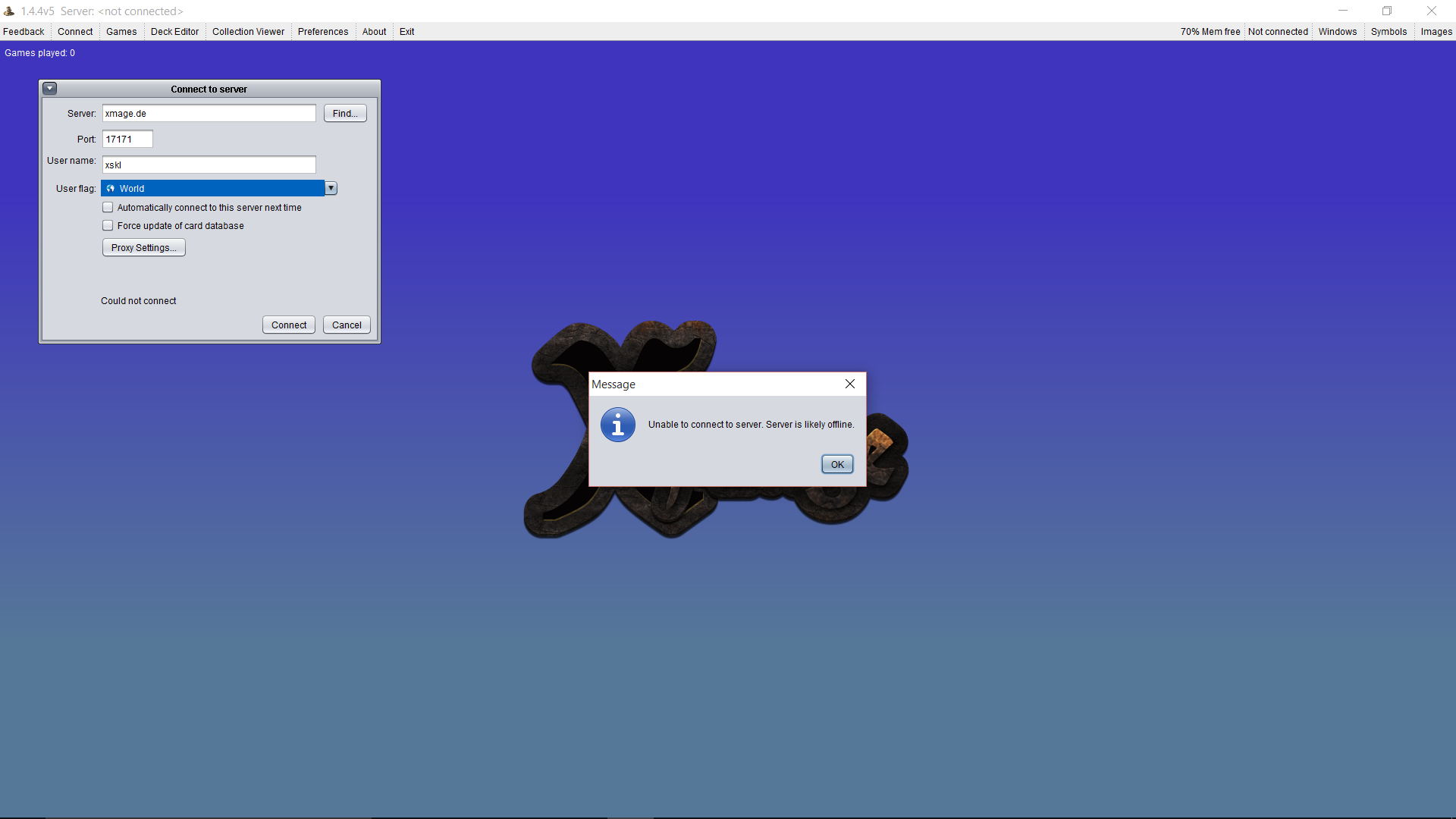 Hi, I have this problem when I try to connect to any xmage server: xmahe.de, woogerworks... Someone, please, help me.