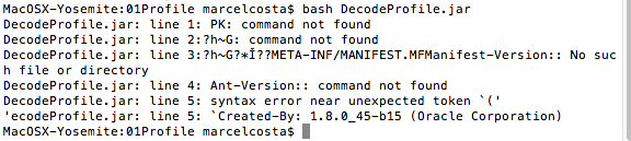 First I used my main MacOSx yosemite. I had copied all files inside a folder with my renamed profile (1.profile) in it. I had already java installed and I updated it just in case.