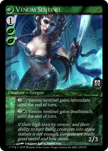 Gorgons as usual, green and black. Focusing on deathtouch, and petrification.