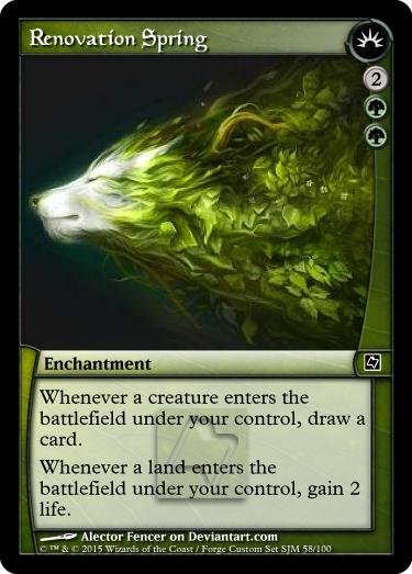 Your english is fine, the only issue I found there is that the official english cards normally say "When this card enters the battlefield" Not "Whenever this card enters the battlefield."edessa wrote:I understeand your point my friend. There are overpowered cards in game. But I also agree that maybe in order to deliver the set quickly I do not balance the things better. I will divide my work in smallest minisets. I will keep the old cards only modifiying some and trying to give them not only tribe but also color oriented. I believe that the correct number of cards will be 100 per miniset. I will upload images of the card and accept suggestions as always.