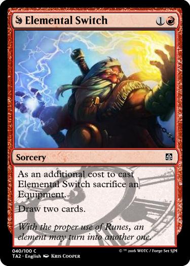 Change the error with "strength" writing. I prefer Rune Bolt and Light Blast remain as sorceries, I shall Downgraded the cost of "Seal of the Titan", there are other four enchantments with similar activation cost, I will downgrade their cost as well to only one mana. Thanks for helping. "Energy Absorption" downgraded to 1U, I don't know about "Experimental Ridge" about making sacrifice itself, I believe of course it could be a little broken, maybe I was thinking something involving charge counters to use it as well as tapping and paying mana, to make it a little more restrictive.correioalternativo wrote:Make a new card for synergy. Card X returns card Y from your graveyard to your hand, card Y returns card X from your graveyard to your hand.edessa wrote:Thanks some suggestions have been taken in consideration. I didnt understeand right your opinion about Hammer Call are you saying changing the card effect or adding a card that does X with equipments?