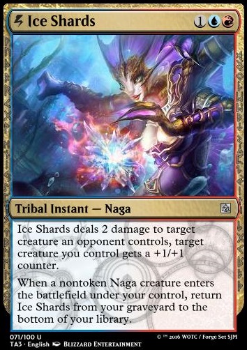 Your Ice Shards card's effect confuses me. Did you want to damage an opponent's creature then add a +1/+1 counter to one of your creatures?