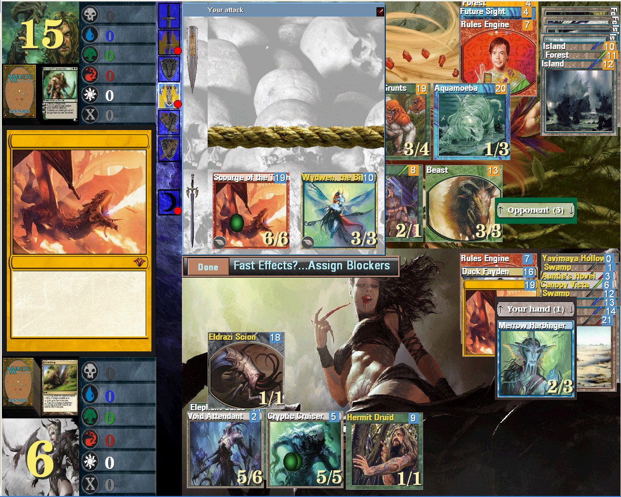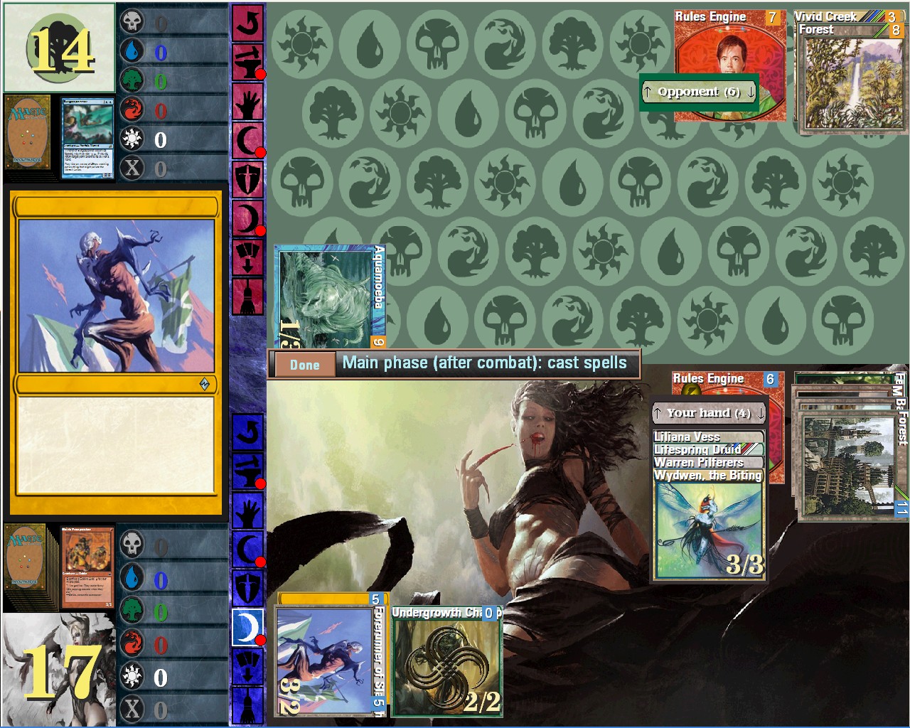 Another creature card=Fleshbag Marauder and others like it or different but disabling creature/permanent(sacrifice opponent creature,destroy creature/permanent,exile creature/permanent,put on top of library creature/permanent,return to hand creature/permanent.....anything I forget that makes creature/permanent useless this turn or ever) that have to be put to be played by AI if not only before combat at least be played also before combat(now only played after combat-so making AI miss an attack at some scenarios)IMHO and in many tests I have run it is better to have both before combat and after combat values enabled for the vast majority of creatures.