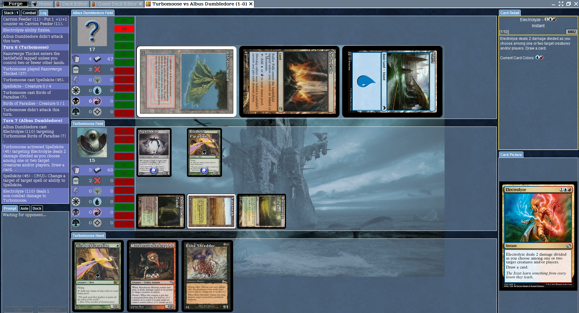 Got the following error when redirecting half of electrolyze from my birds of paradise to my spellskite. The other half of the electrolyze was targeting me. Beta 02-23-2016 ver 1.5.49