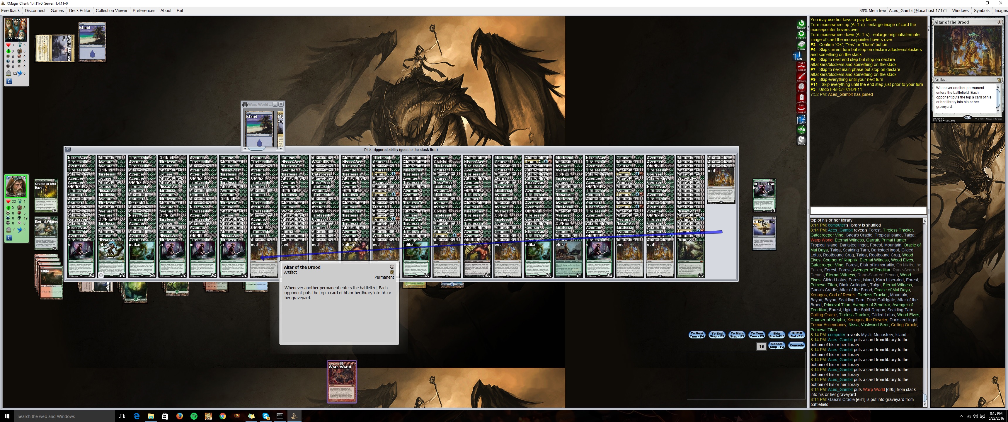 Howdy! Huge Fan of the client first off. The suggestion I have is with regard to the Stack trigger windows. When multiple card effects trigger the game asks you to choose an order of operations for those triggers to hit the stack. This is correct but the current system isnt very friendly to high volume trigger decks and can often cause a crash when I play my Warp World deck. My question and suggestion has 2 parts.