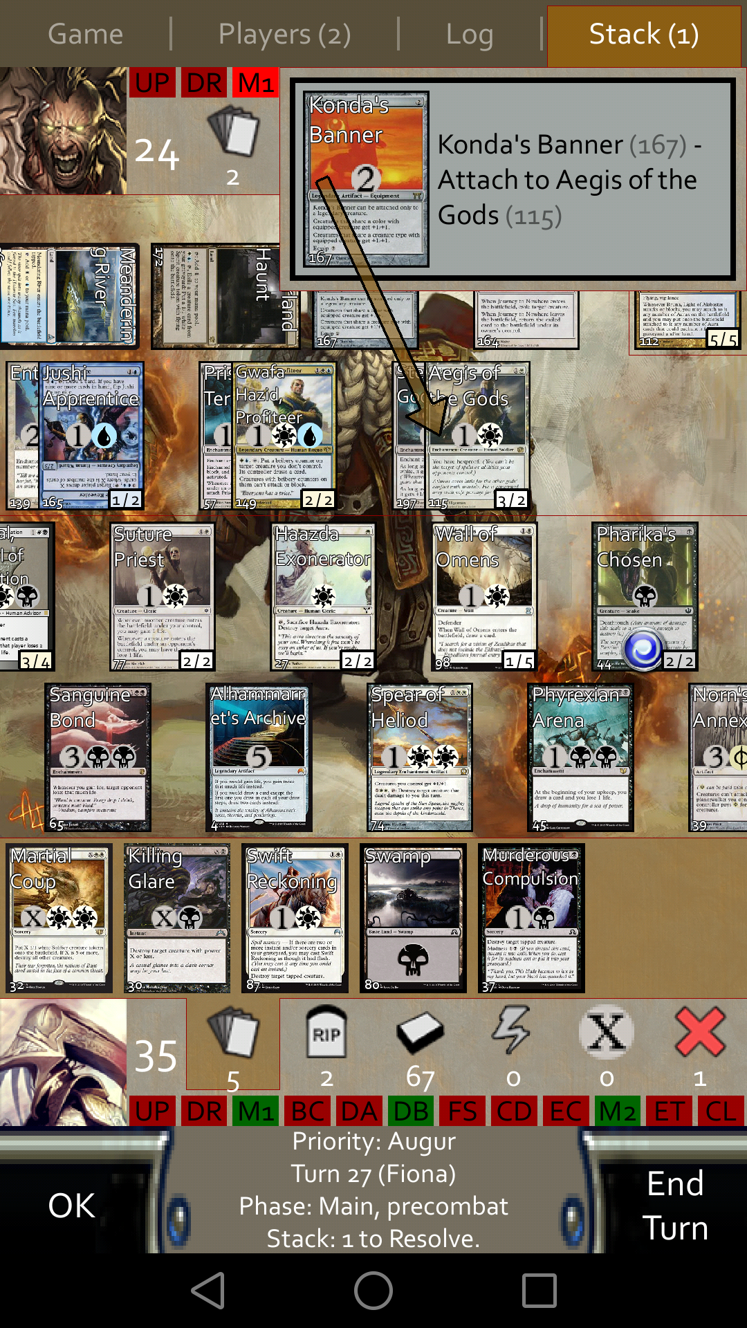On the mobile version AI tried to attach Konda's Banner to Aegis of the Gods over and over again wasting all it's available mana