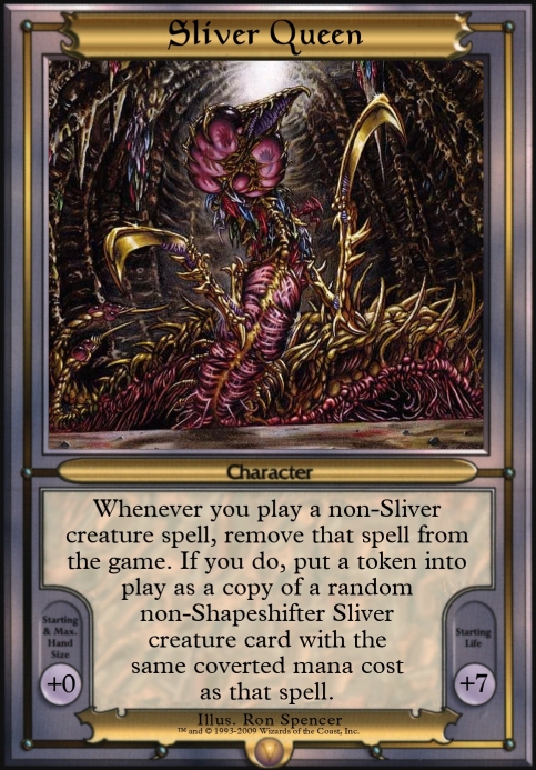 Whenever you cast a non-Sliver creature spell, exile that spell. If you do, put a token onto the battlefield that's a copy of a random non-Shapeshifter Sliver creature card with the same converted mana cost as that spell.