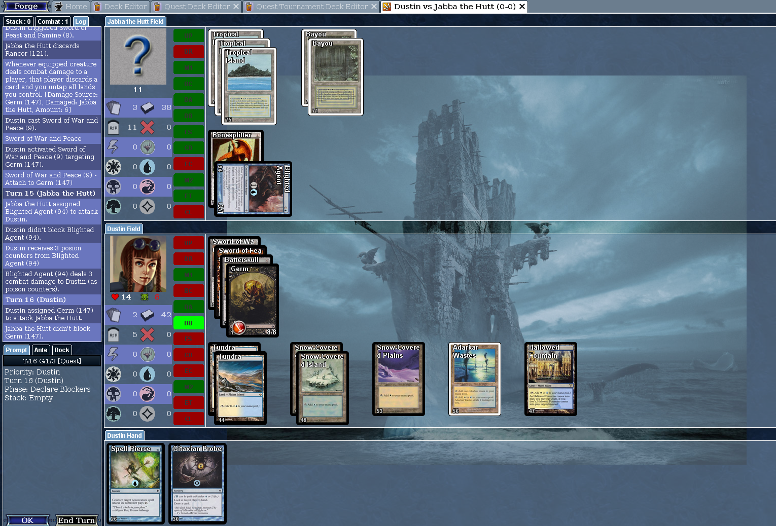As advanced strategies, AI could prioritize Ghost Quarter when opponent's searching capabilities are reduced (by something like Mindlock Orb, though Aven Mindcensor is probably not enough to stop Ghost Quarter), or when opponent has very low library count (like, less than 10 cards) -- I've seen some mill decks that used Ghost Quarter because opponent either loses mana or loses one card from library.goonjamin wrote:This is on the most recent Android release.