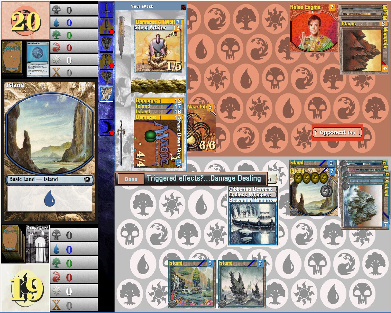 2- Also when human is attacking with a creature a really,really weird thing is going on as after attackers are selected although the combat window is open the game proceeds to 2nd main phase