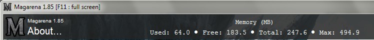 If you open the About screen by clicking on the M logo in any screen you can see the current memory usage. For example you would expect to see something like the following usage just after the main menu is shown on starting Magarena,