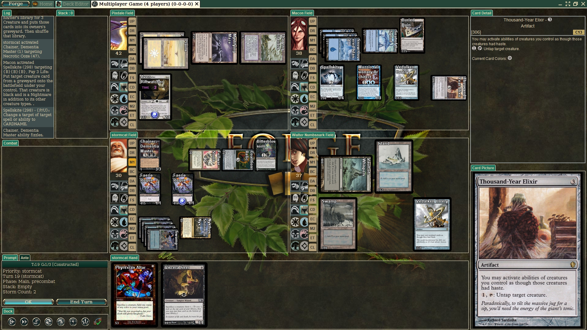 - Forge stopped working as I was selecting a color combination on Constructed's "Random Modern Color Decks" and mistakenly used Shift to select all the colors. First time was after a long enough bout (at least 8 matches), selecting each possible iteration in turn and only advancing to the next one after winning a match. Had the same selection mishap just after opening Forge again with a similar end result.