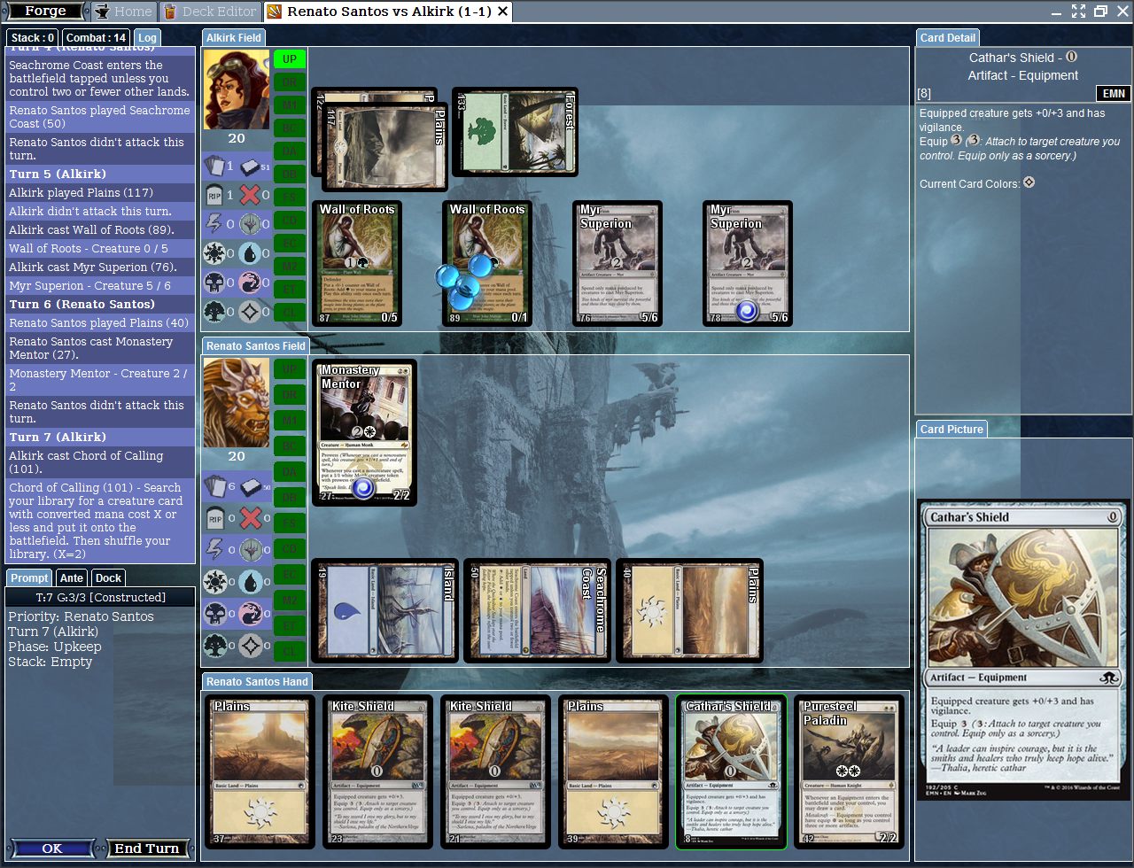 - Not sure how the AI managed to cast a Myr Superion by placing two -0/-1 counters on a single Wall of Roots but there you go: