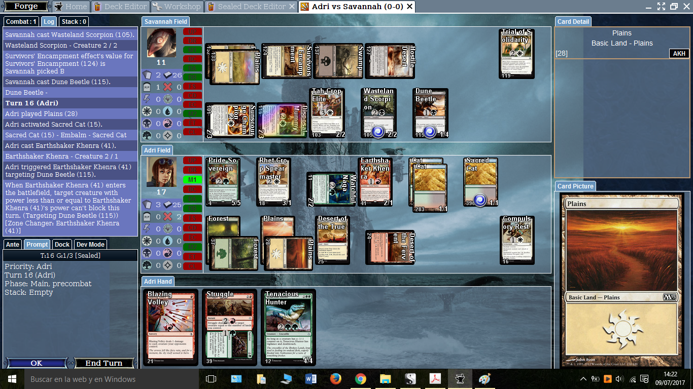 , and I tried to target Wasteland Scorpion in order to prevent him to block this turn, but it didn't allow me and I had to select a Dune Beetle that was on the bf at the moment.