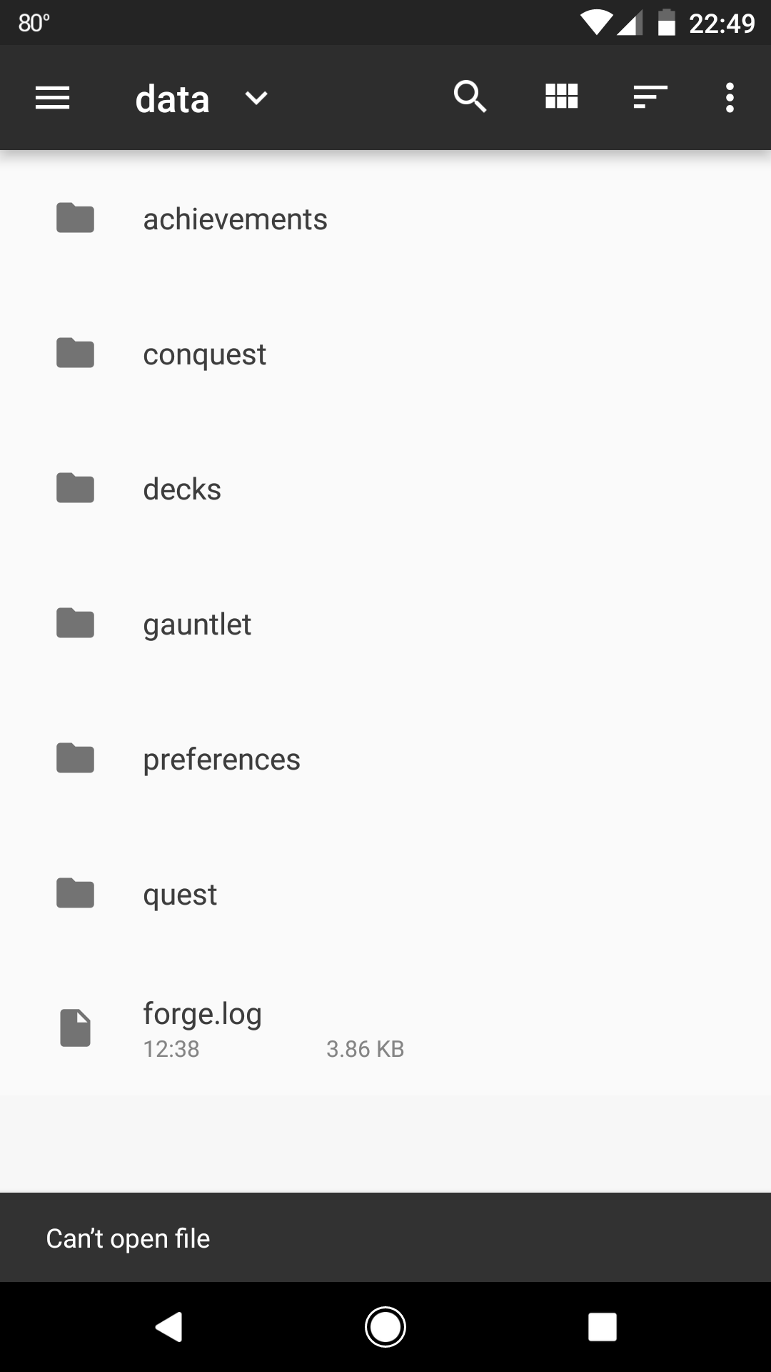 Forge force closes as soon as I tap to open it. So I can't access the data sub folder.