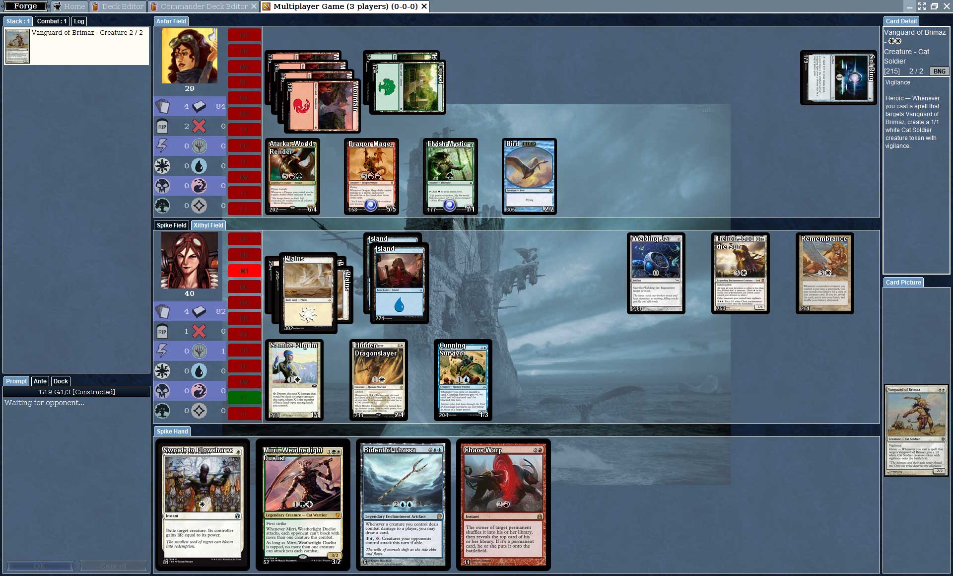AI#2 casts a creature spell (Vanguard of Brimaz). I click OK, no response. Game hangs, 100% CPU when game window has focus.