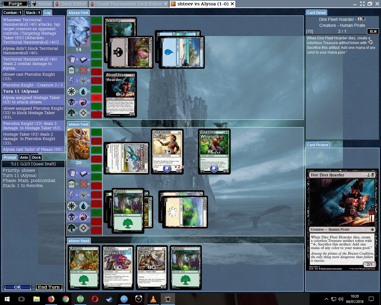Just as an example of what I'm talking about: I've just had the AI reach it's end of turn step, I activated my Quest Mode Plant Token to gain a life, and in response the AI cast a Plumeveil. Props to the AI for trying something tricky, but in practice I'm almost always going to activate a Plant Token at the end of his turn when I'm in Quest Mode.shteev wrote:It seems to me like the AI currently waits to play creatures with the flash ability until after I have performed some kind of game action, in order to catch me out.