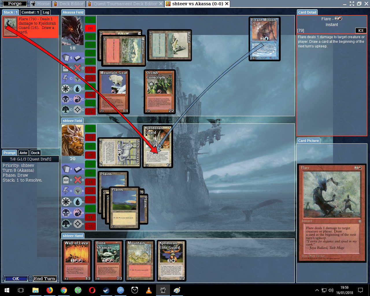 Similarly, here, I have two creatures, and the AI targets the same one with an Errant Minion and then a Flare.