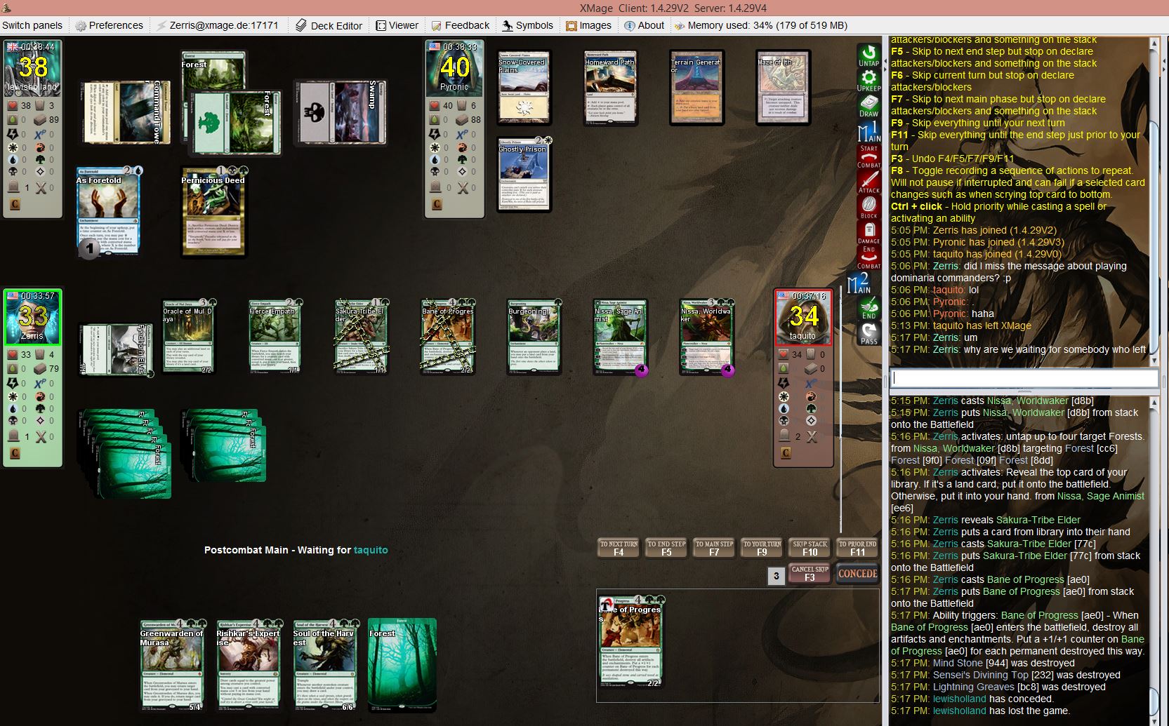 6:28 PM: Zerris puts Island [4a1] from hand onto the Battlefield