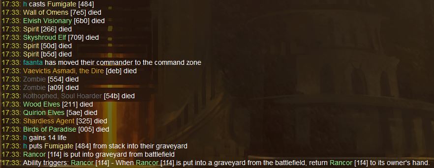 7:41 PM: Demonkid278 puts Epicure of Blood [af7] from stack onto the Battlefield