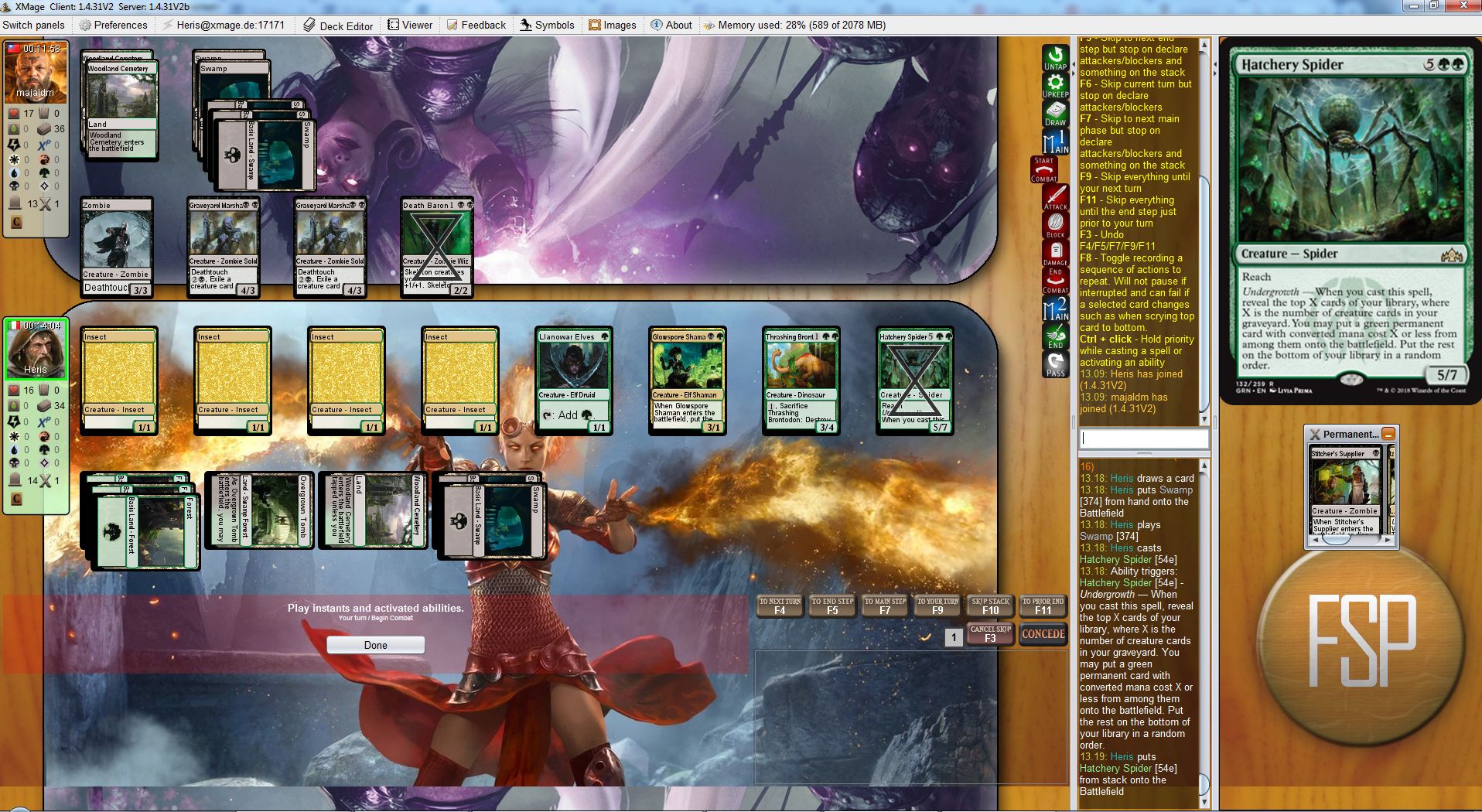 The log should be saved in a text file.Heris wrote:Xartah, you're right but i'm sure that my opponent played Vivien Reid tapping the 5 Forest then attacked with 3 creatures, maybe XMage didn't register the Llanowar Elves as attackers and so my Llanowar Elves as blockers. Unfortunately i don't have the whole log of the match.