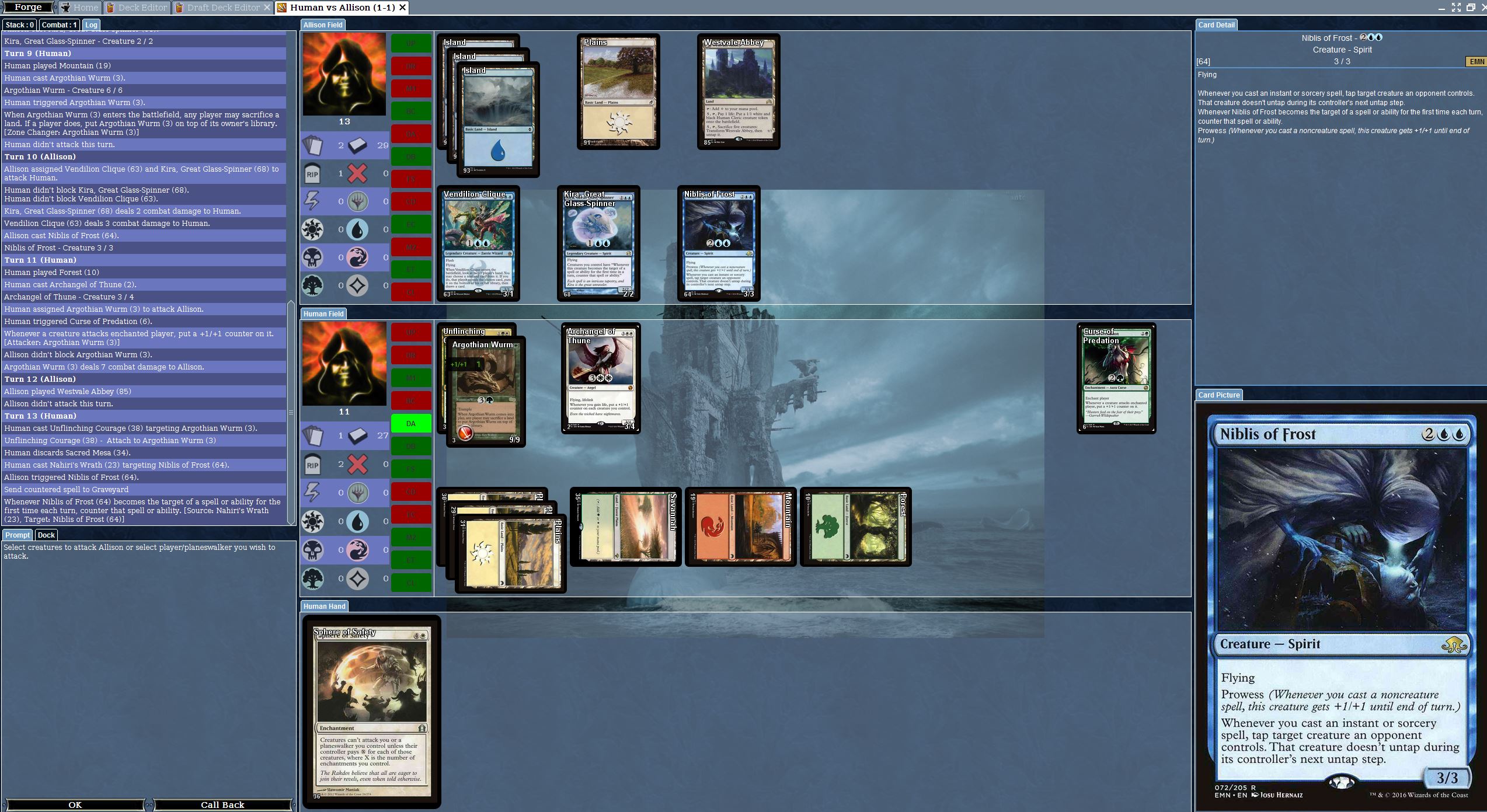 Hello,Xitax wrote:Multiplayer bug report - online and in the same house, my opponent's cards in hand were showing Magic backs instead of pictures. The pictures were visible on field and in the card picture panel though.