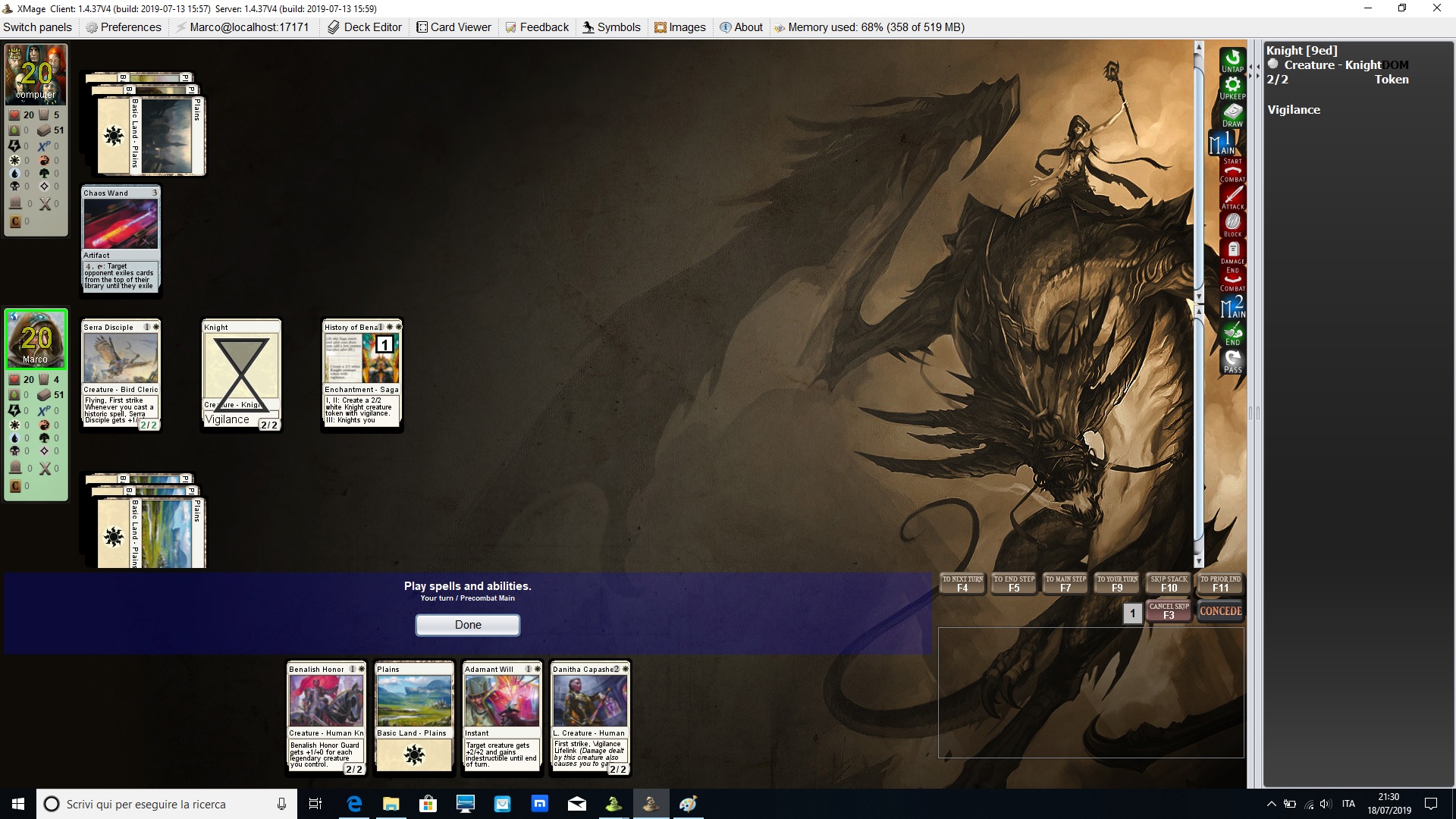 - screenshot 3: during play, cards generating tokens which are multi-numbered (for example, History of Benalia should generate Knight 2.full.jpg) cause an empty token to be displayed - no image at all in either styles.