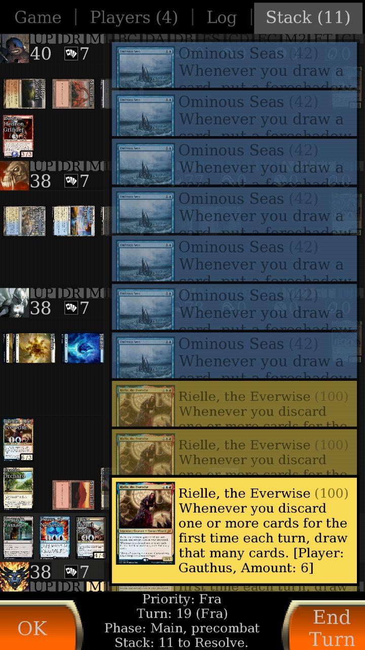 I think the current implementation of Rielle, The Everwise is bugged. Whenever I wheel her triggered ability triggers once for each player, making me think that in her current implementation probably the ability is set to trigger whenever any player discards, instead of whenever you discard.
