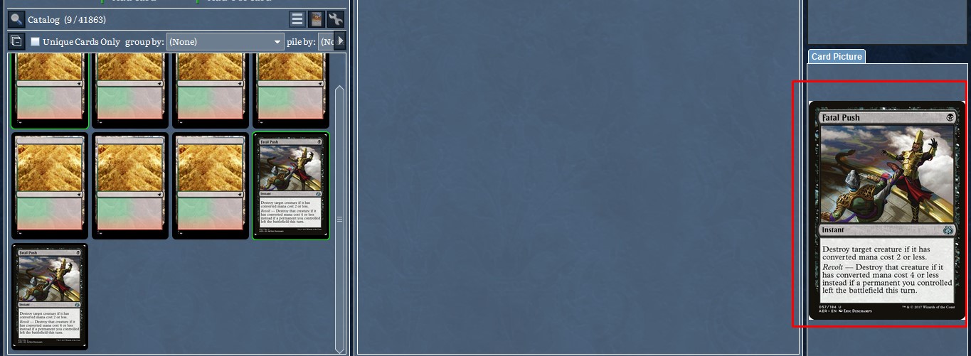 So, firstly, after downloading the program, I chose to download LQ set pics in the "Content Downloader" section, since HQ would take much more time and I wanted to at first try out the app itself and decide whether or not I want to mess with high-quality images in the future. I liked how it worked and decided to use "Import Data" option in order to import the HQ pics I had previously downloaded for other purpose. But for some reason the application seems to not use HQ cards, or not use them in each case. For instance, cards from A25 set look pretty sharp, while 10E is more blurry. Is there any way to fix the problem? Maybe, somehow wipe all images from the holder and then import only HQ pics so that Forge would have no other choice but use them?