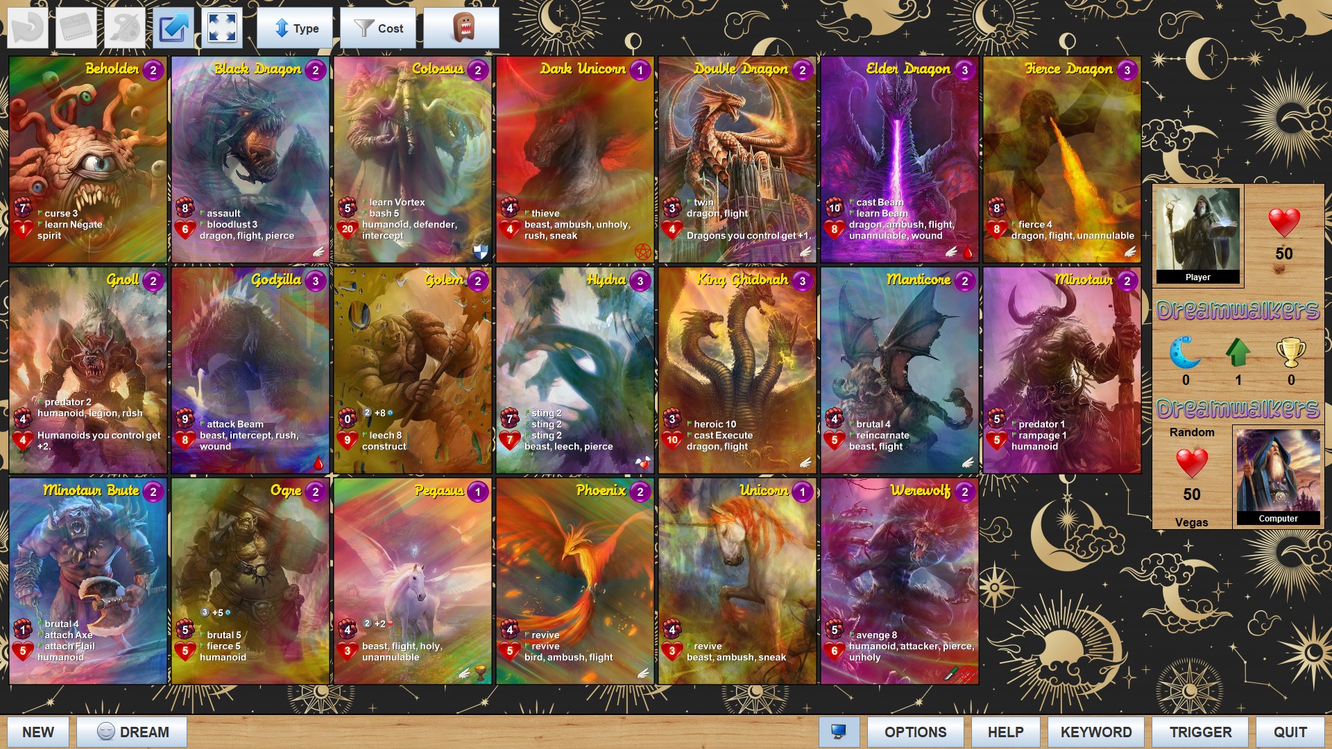 - After creating a new game, check if the initial deck is strong enough before starting.