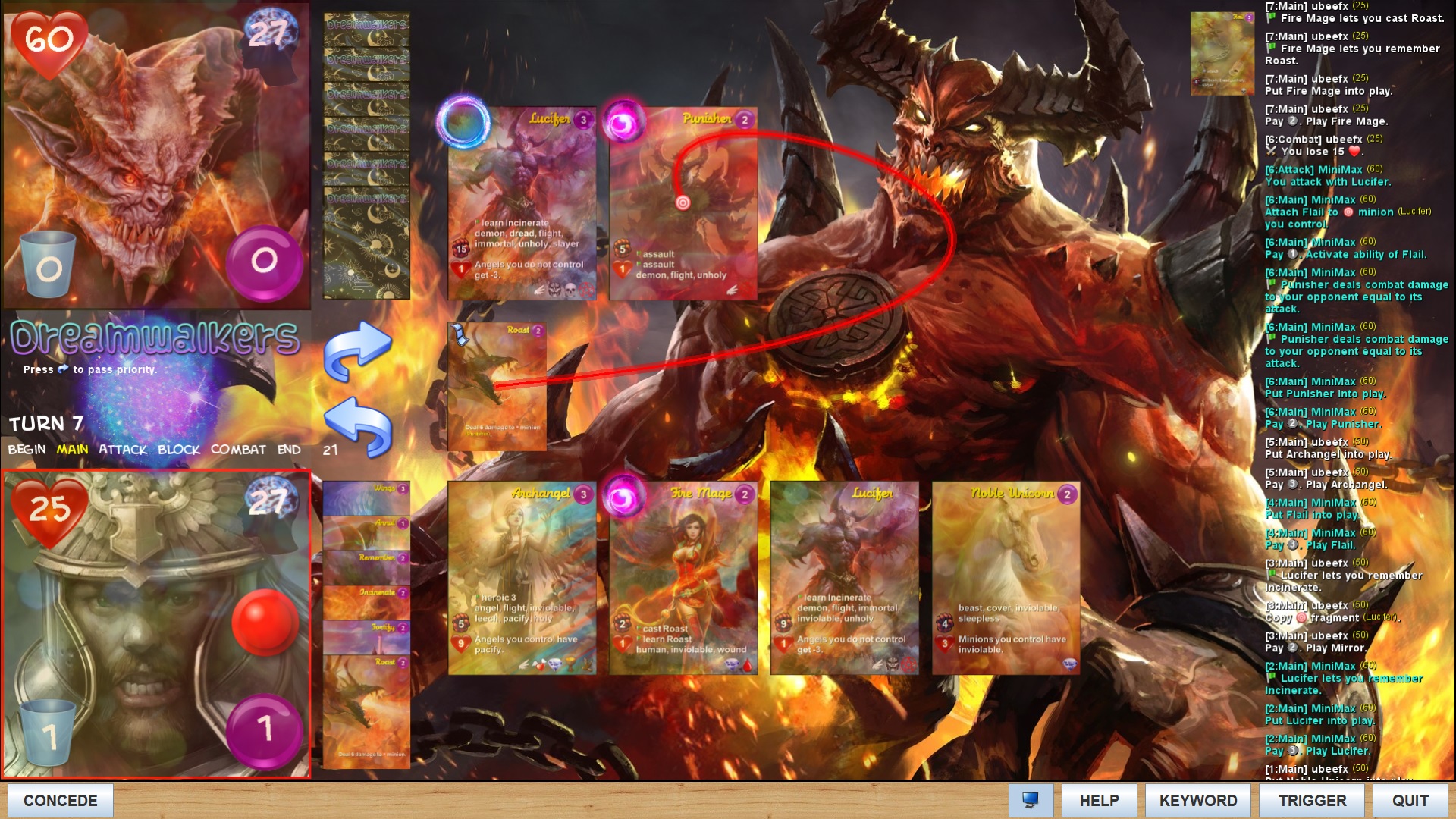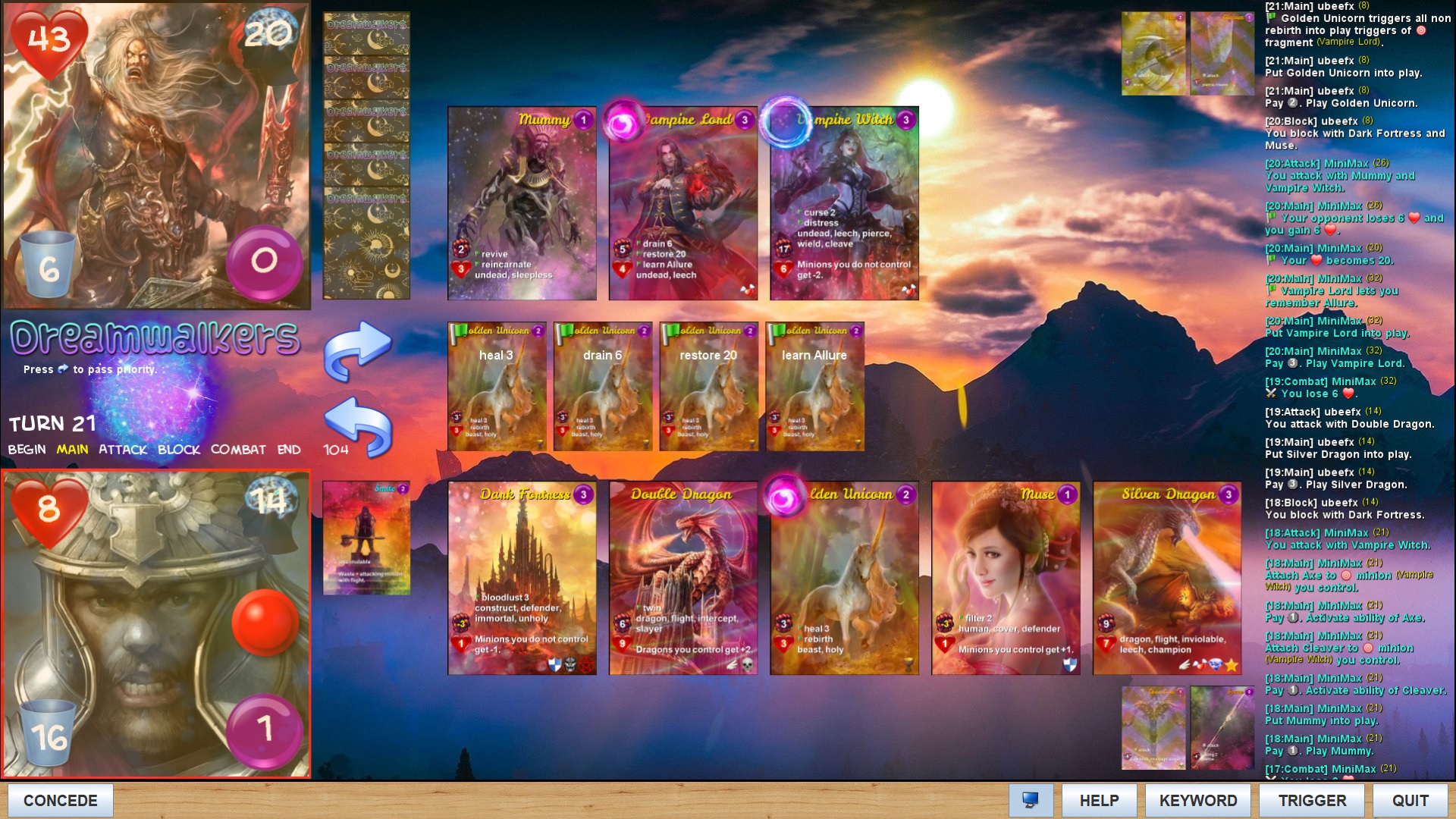 - Concede as soon as possible if winning does not seem likely spending the 100 life.