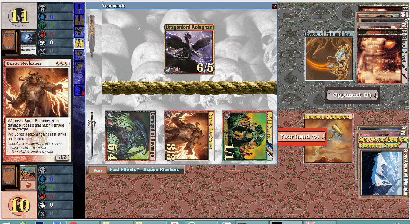 The "Lord" type of cards that boost others are set to be played for AI in both main phases as AI most of the times plays them well in first main and few times if AI will not attack in 2nd. If we make AI to play them only in 1st main then we get another issue that to my experience is more often than AI make a bad use of "Lords" and not cast them before combat although AI did attack or would attack if it cast them before.FastEddie wrote:The AI often plays (correctly imo) cards before attacking that support the attack like Muscle Sliver or Sinew Sliver in a Sliver deck. However, a Bonesplitter Sliver is usually played after attacking. Same for a second Cranial Plating in an Affinity deck. Imo these cards should be played before attacking.