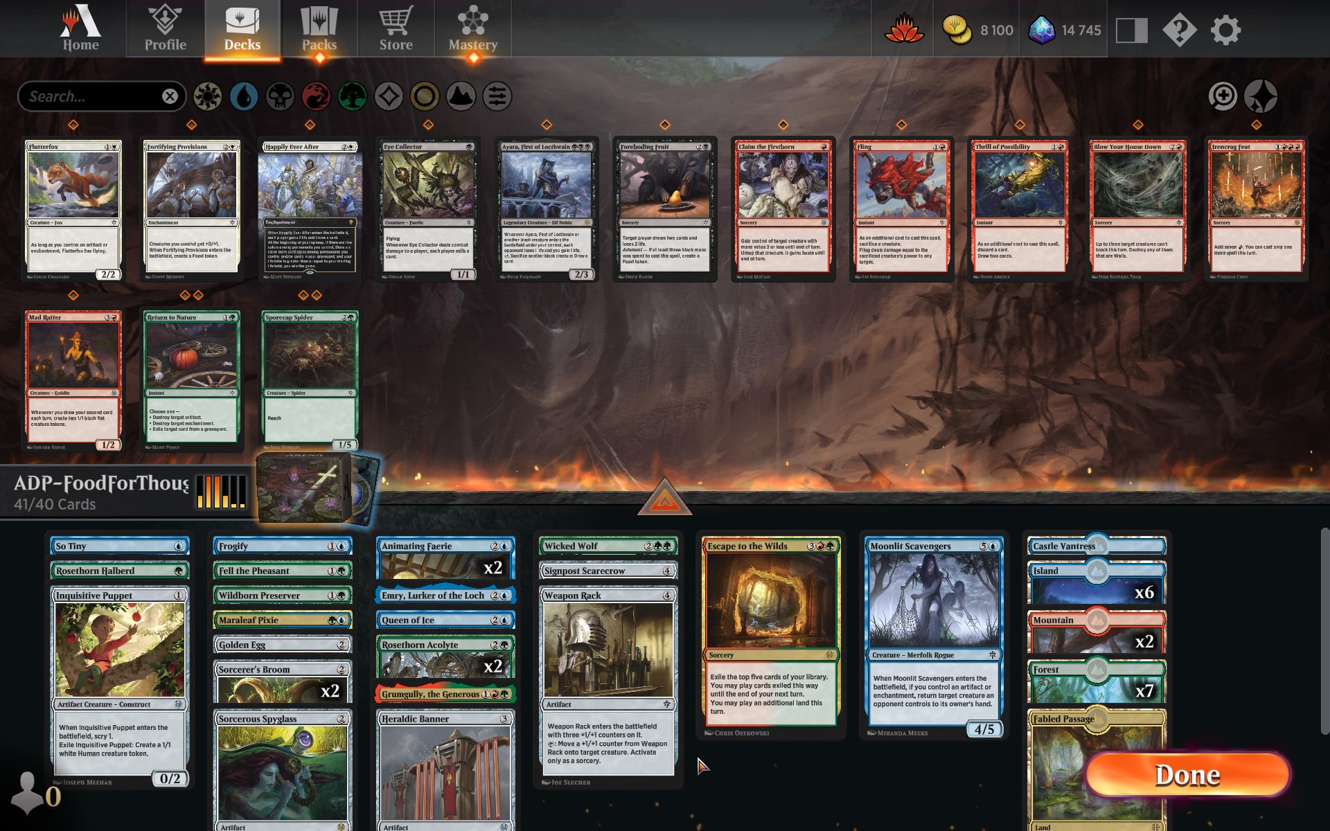 So, new plan : I've been somewhat heavily investing in artifacts since they still can work even with an horrible mana base (going from DomU's Domain to ToE's Adamant is quite the culture shock !), so I settle on this :