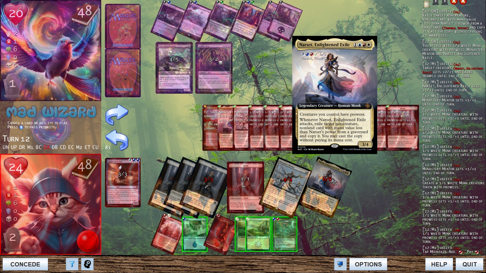 Example of new hybrid AI in action with an enchantment versus aggro deck.