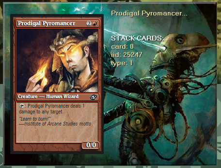 Here's the setup; I'm trying to target Prodigal Pyromancer's ability with Stifle (Stifle is currently invisible and selecting targets):