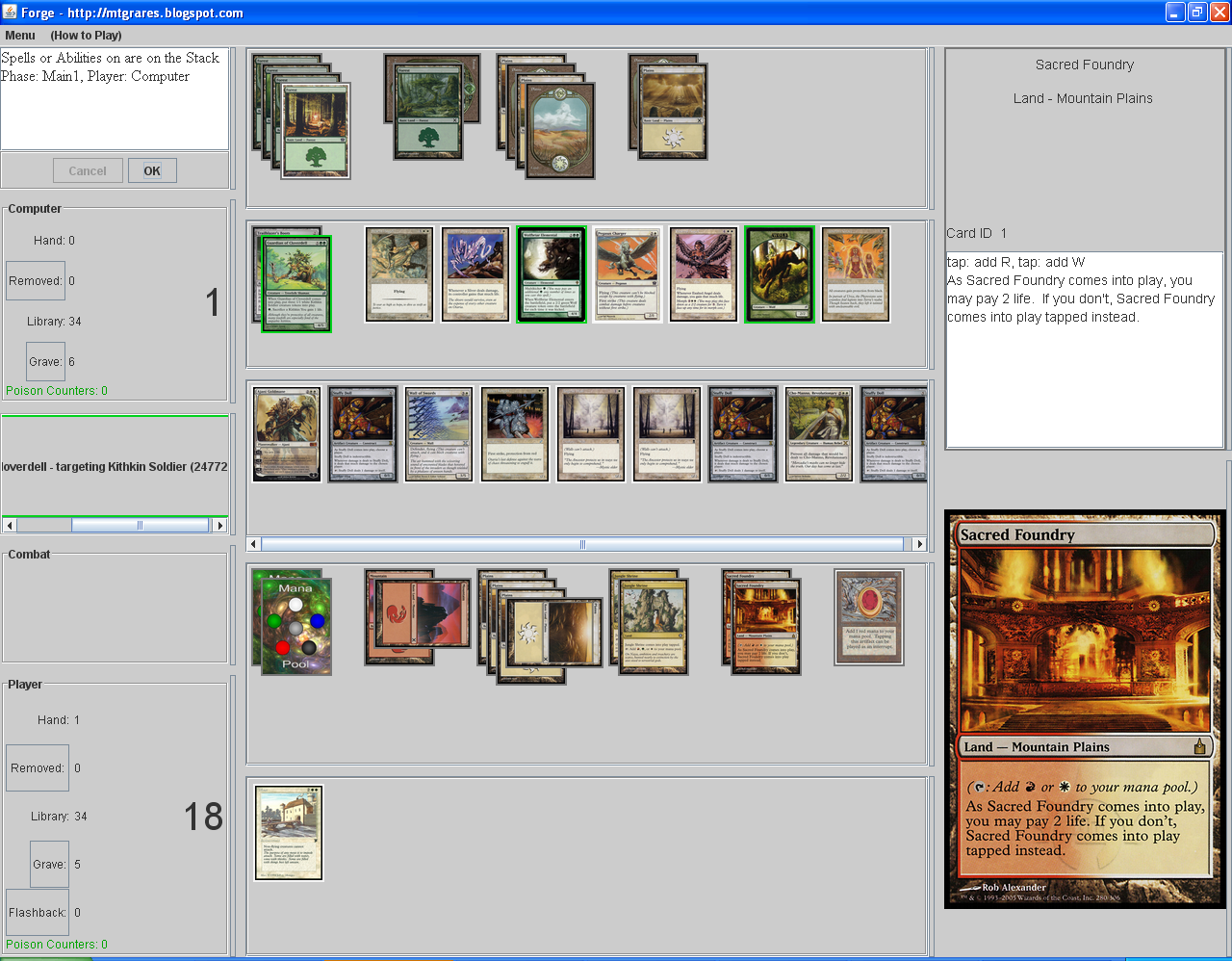 EDIT3: Exalted bonuses still occur if all but one of multiple attackers dies during the "Declare Attackers" step, thus defeating the purpose of actually implementing it as a triggered ability. If the computer reanimates and uses the ability of my Sakura-Tribe Elder, I'm shown the basic lands in its library and asked to choose one or none. Is this some sort of fallback for when cards requiring selections wind up under the computer's control? The AI also swindled itself out of a win by killing my planeswalker rather than me with its army.