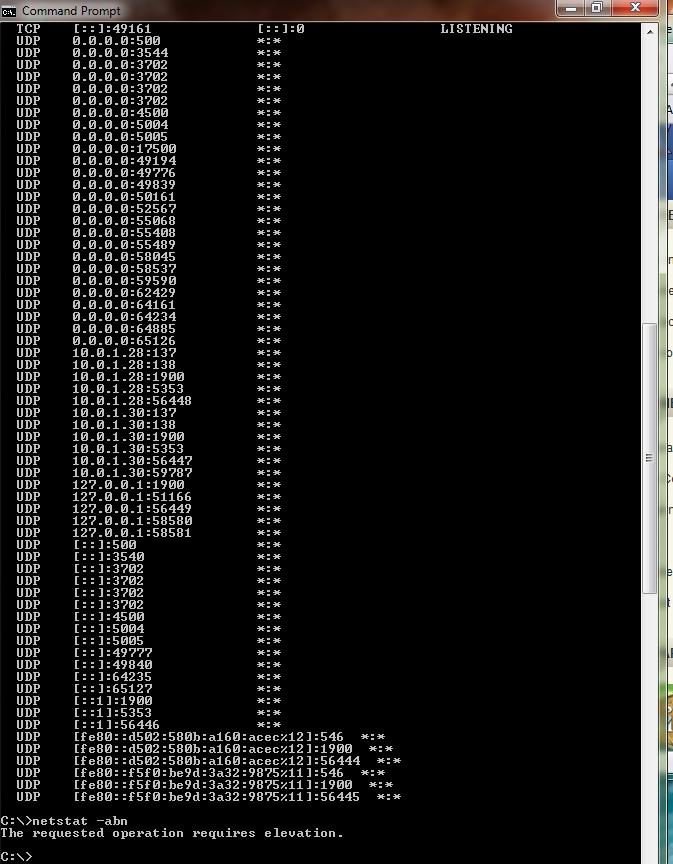 The b option shows the actuall program responsible for the opened port, but this option will take some time to fully process, about 2 minutes on my machine, but it's got an insane amount of ports open.