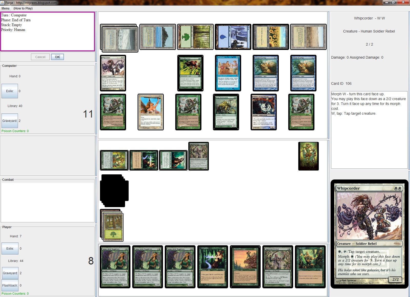 Not exactly a bug, more like a "it really sucks at deciding how to attack." We do improve the AI slowly at a time, Combat (in general and for the AI) are ripe for improvements soon.jeffwadsworth wrote:Using 3332. Note the attached picture. The AI did not attack during the last 2 full turns. All AI creatures were in play for at least 4 turns and attacked fine before the last 2. The blank cards are 2/2 Wolf tokens spawned by the Wolf-Skull Shaman. During the last 2 turns, it cast 2 Glimmerdust Nap, Whipcorder, Wall of Blossoms.