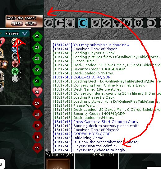 So I'd like to be able to load my deck and then start the game either before or after a dice roll or coin flip or whatever can be called by us, to determine who goes first, instead of by OPT. .
