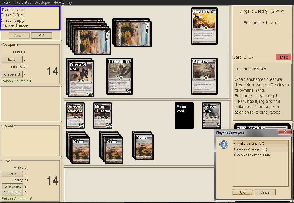 I just tested this with the latest beta on Git and it worked perfectly. Holy Day was imprinted with the Scepter and no damage was done with 2 MoonGlove Changelings attacking me.s1886x wrote:I had Holy Day imprinted on it. That's all that I remember. I also couldn't get it working with Swords to Plowshares on itfriarsol wrote:Please give more information than this. I had the Scepter working not very long ago. What did you have Imprinted on it? Anything else funky going on?s1886x wrote:Isochron Scepter can't be activated. I click on it, but nothing happens