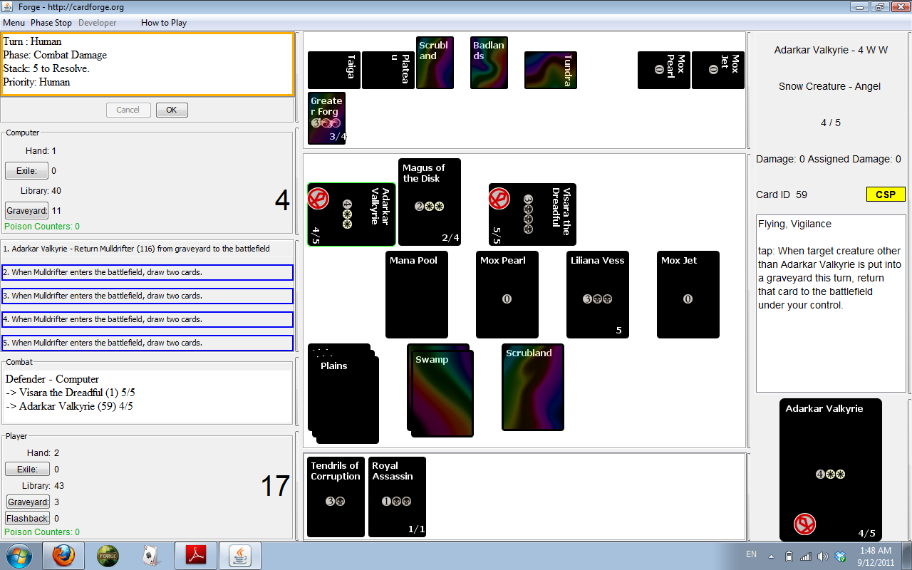 Sounds like the real issue is Triggers hitting the stack before multikicker finishes.ZzzzSleep wrote:It looks like this problem is wider than I initially thought. The same thing happens if you have a Throne of Bone in play and try to play Quag Vampires. It seems that multikicker is unable to resolve if something jumps on the stack ahead of it.ZzzzSleep wrote:Version: 1.1.2