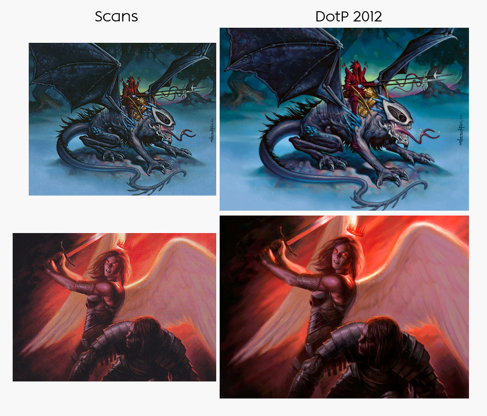 We're talking about some 800 artworks, at 512x376, with the best quality available. Of course, since our HQ scans are also pretty good, the increase in quality is only about 10-20%. I've attached a visual comparison.
