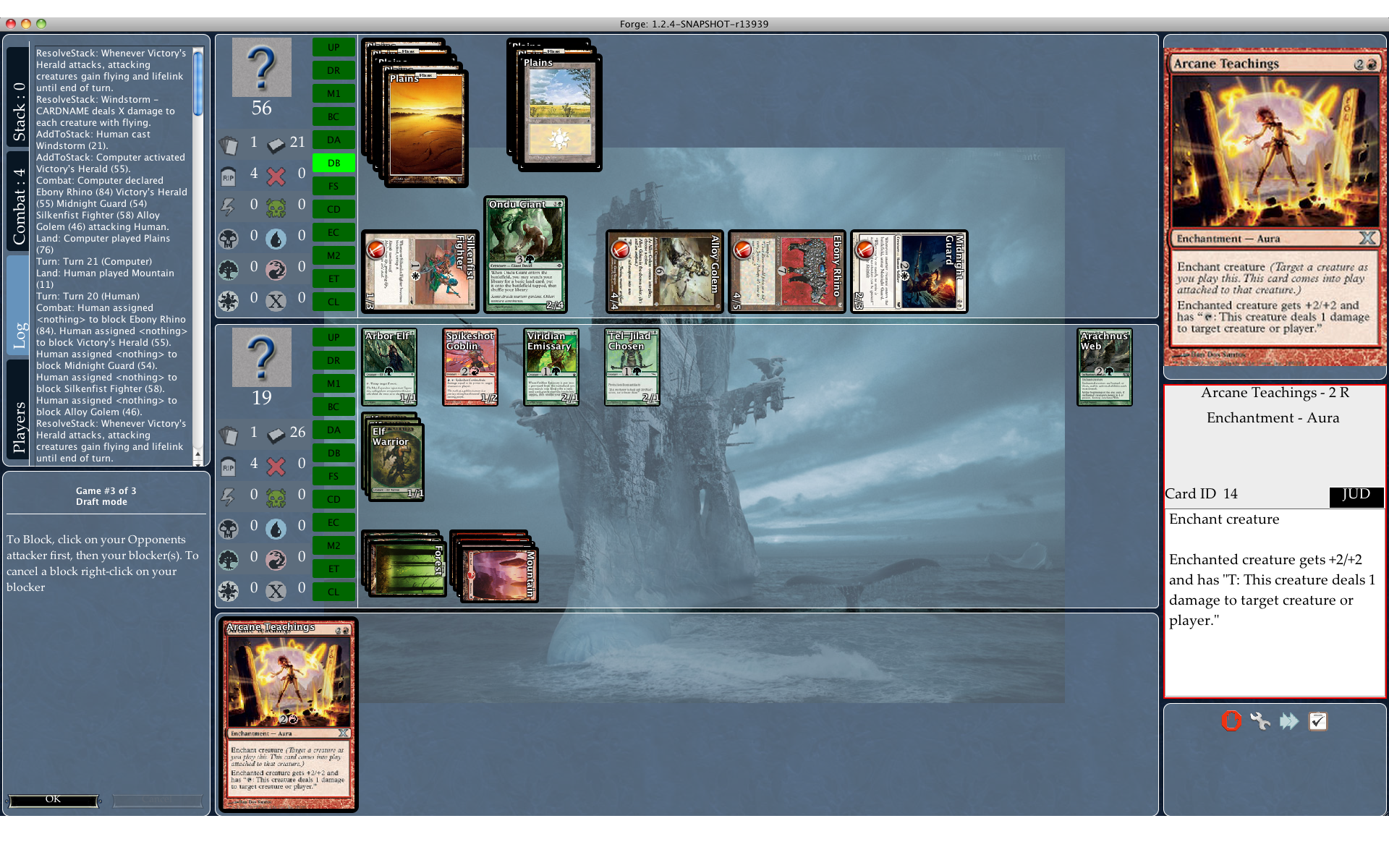 I think you're right - stupid stacks! sometimes hard to tell where the AI is at with all that when it starts getting "laggy and jumpy" I'll have to pay even more attention at times like that - Thanks again - great work in progress!slowe wrote:It looks like you cast the Windstorm before the Herald's ability resolved, so none of the other attackers had flying yet.tafkad wrote:Bug with Windstorm - AI attacks with a hoard including Victory's Herald - All creatures gain flying and lifelink - cast windstorm for 6 damage to destroy all creatures with flying - only the Herald dies - see picture