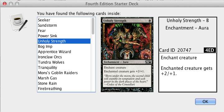 I've seen this in Booster Packs too, so it's not Starter Pack specific. Not sure what would be causing this to happen.Chris H. wrote:While scrolling through the list of cards in the pack I noticed that the width of the list will change from one card to another. This tends to push the picture panel and the card detail panel to the right when the list increases in width. This can cause the card detail panel to be cut off.