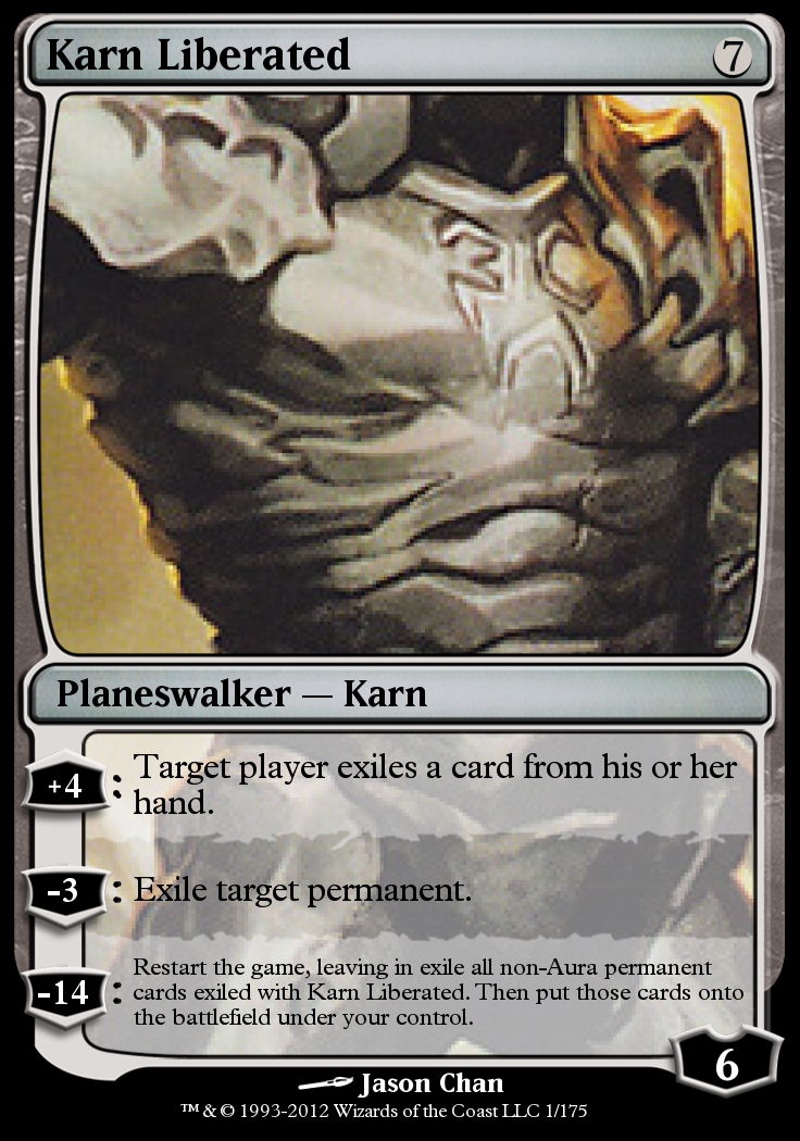 Below are two images of Karn Liberated (he is both a Planeswalker and in New Phyrexia).